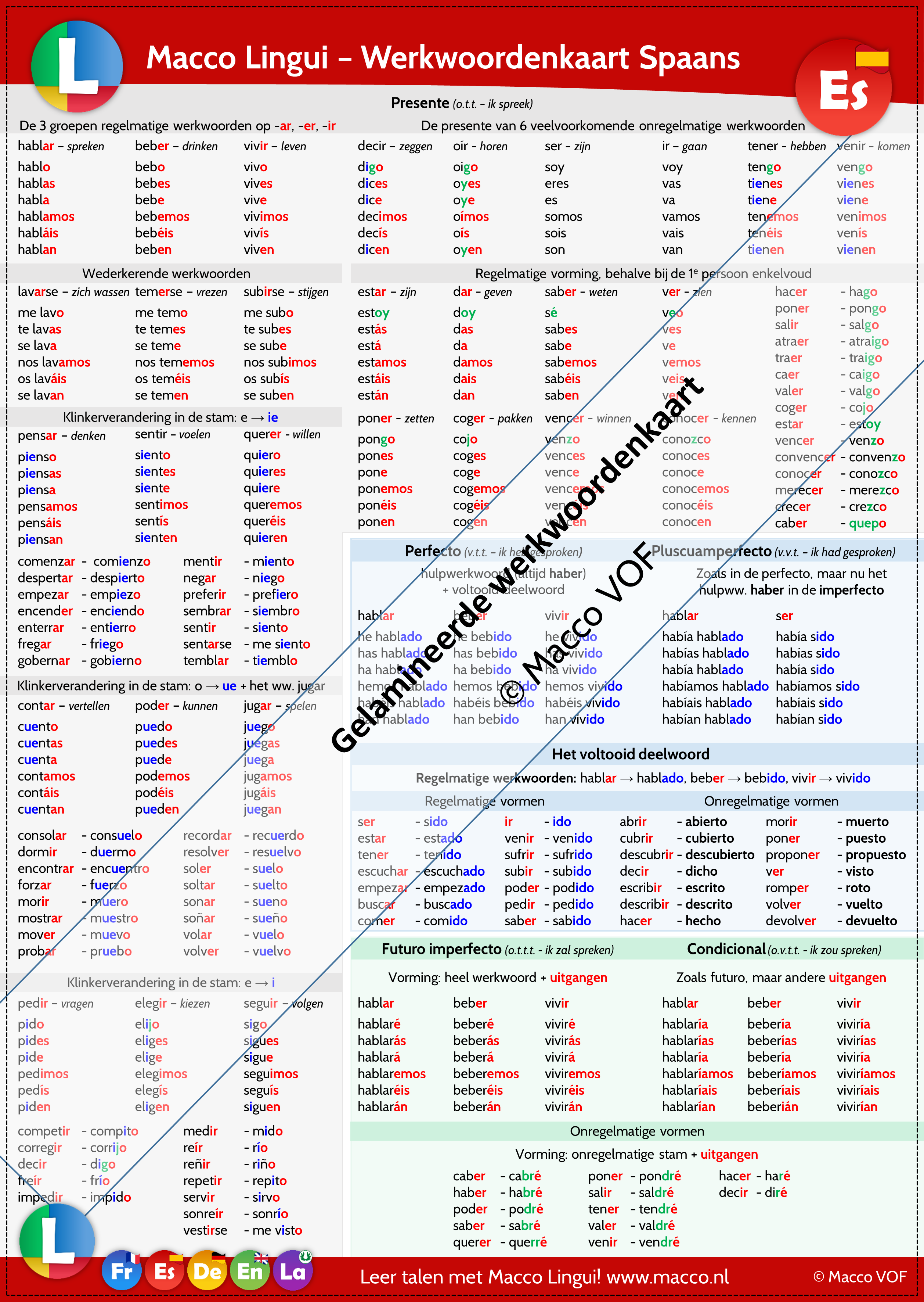 - De belangrijkste werkwoordsvervoegingen in de belangrijkste tijden schematisch weergegeven.